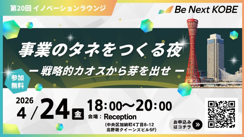 Be Next KOBE イノベーションラウンジ【第20回】開催のお知らせ― 事業のタネをつくる夜 ―